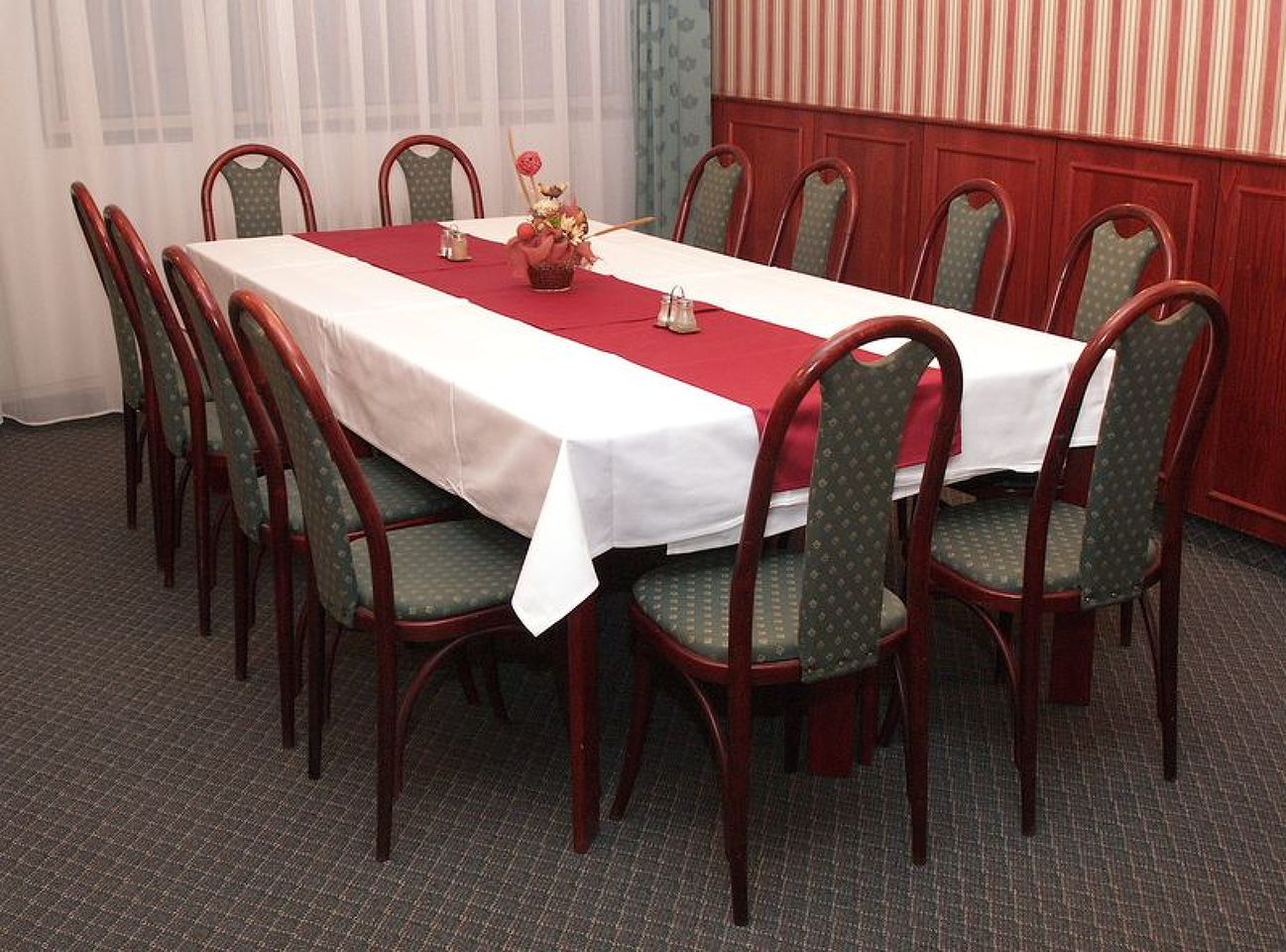 Restaurace hotelu je určena nejen pro hotelové hosty, ale i pro širokou veřejnost - pořádání soukromých oslav, svatebních hostin a firemních rautů. Restaurace je otevřena denně od 7.00 do 22.00. Snídaně podáváme formou švédských stolů, obědy a večeře vybíráte z jídelních lístků. Pro skupiny máme připravenou nabídku zvýhodněných skupinových menu formou výběru ze 3 variant nebo nabídku rautů - klasický, zvěřinový, zabijačkový, vánoční, grilovací atd. Nově jsme v hotelové restauraci zavedli dětský koutek.